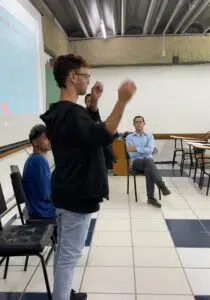 E neste mesmo dia, uma palestra sobre a Cultura surda em movimento na pedagogia “Libras”, tomou conta dos alunos. E ainda por cima,no final teve até roda de conversa!